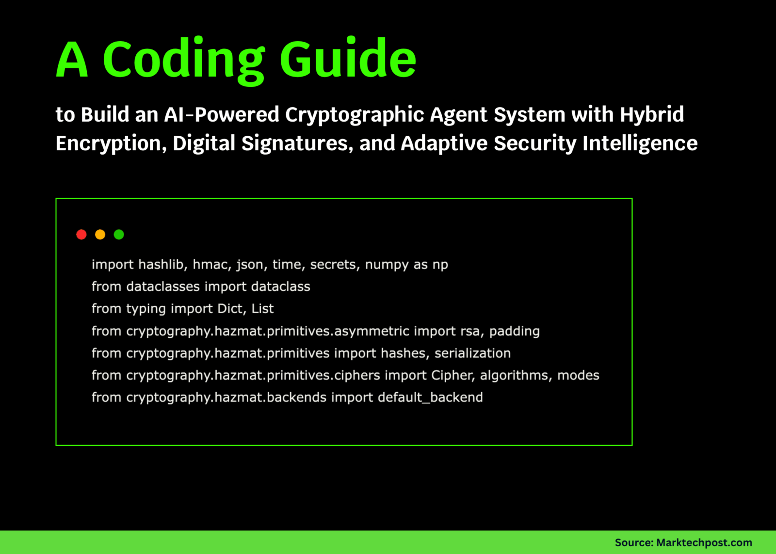 In this tutorial, we build an AI-powered cryptographic agent system that combines the strength of classical encryption with adaptive intelligence. We design agents capable of performing hybrid encryption with RSA and AES, generating digital signatures, detecting anomalies in message patterns, and intelligently recommending key rotations. As we progress, we witness these autonomous agents securely establish communication channels, exchange encrypted data, and continuously assess security risks in real time, all within a compact, efficient implementation. Check out the FULL CODES here.