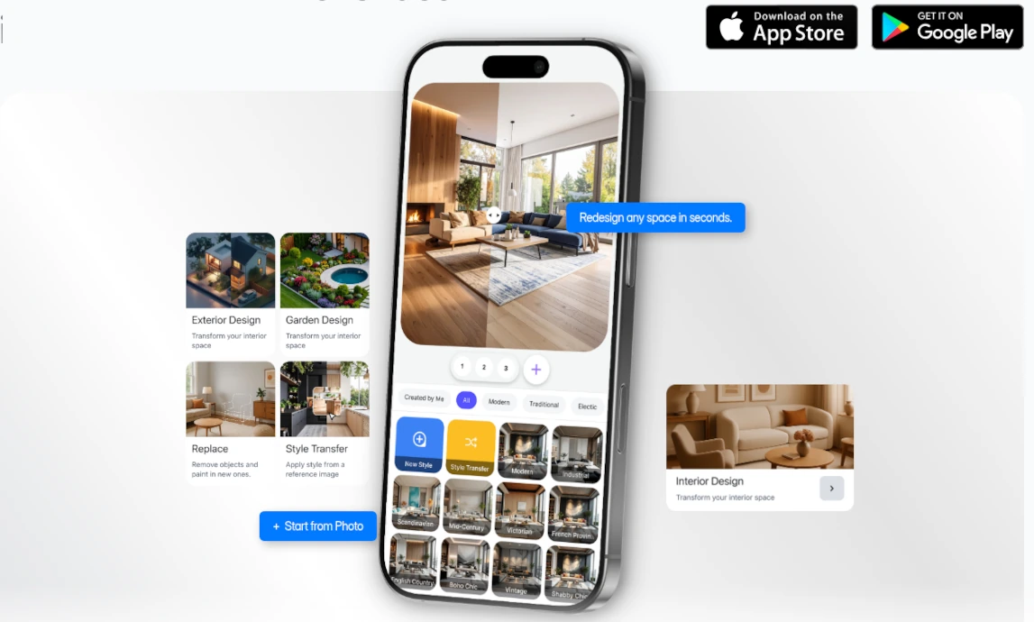 Det som verkligen imponerar är hastigheten. Inom sekunder får du en fotorealistisk rendering av ditt rum i en helt ny stil. Det är perfekt för att snabbt utforska olika alternativ utan att behöva investera tid eller pengar i traditionella designkonsultationer.