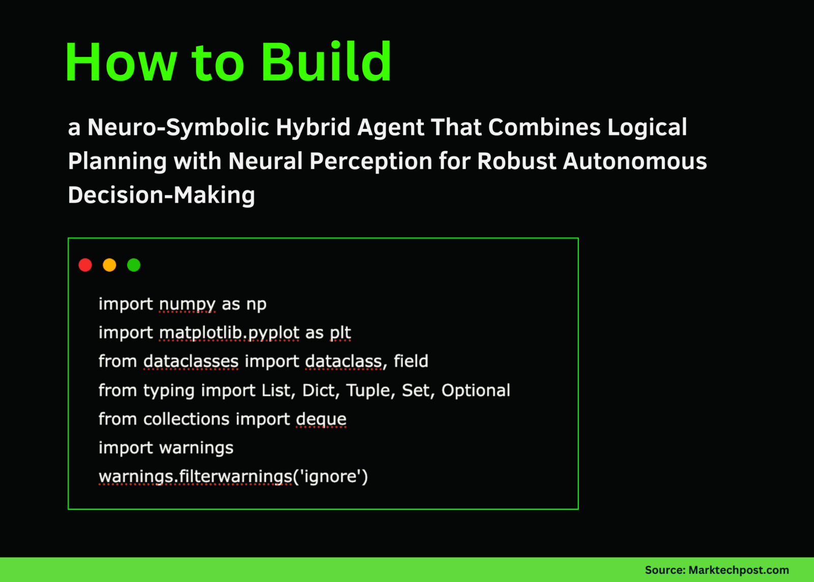In this tutorial, we demonstrate how to combine the strengths of symbolic reasoning with neural learning to build a powerful hybrid agent. We focus on creating a neuro-symbolic architecture that uses classical planning for structure, rules, and goal-directed behavior, while neural networks handle perception and action refinement. As we walk through the code, we see how both layers interact in real time, allowing us to navigate an environment, overcome uncertainty, and adapt intelligently. At last, we understand how neuro-symbolic systems bring interpretability, robustness, and flexibility together in a single agentic framework. Check out the FULL CODES here.