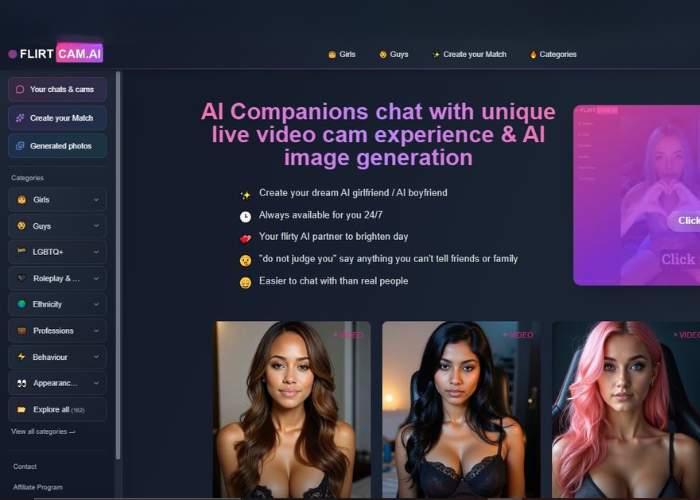 Flirtcam AI takes the concept of “AI girlfriend” to another level by combining uncensored video chat with conversational AI.