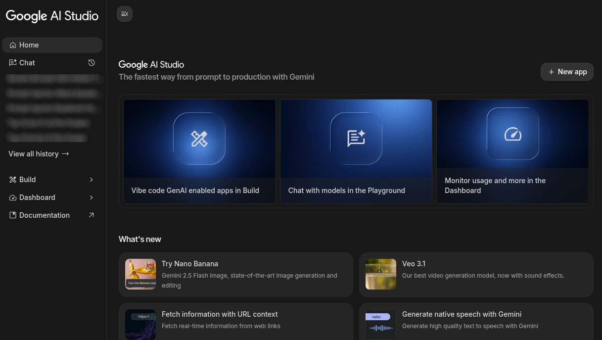 Det här är AI studios nya UI utseende.